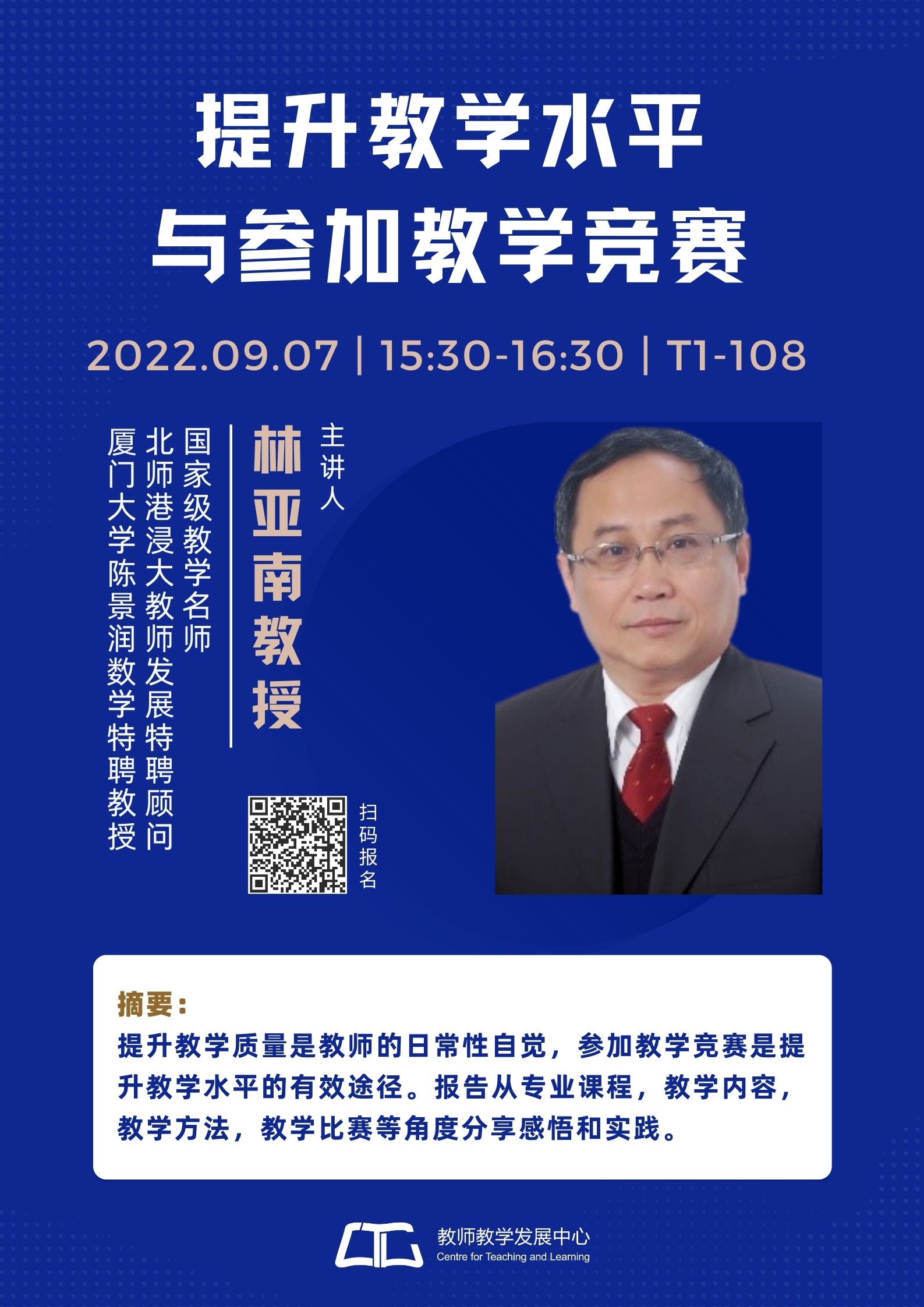 Speakers: Prof. Yanan Lin亚南教授 (国家级名师、UIC教师发展特聘顾问教授,厦门大学教授)