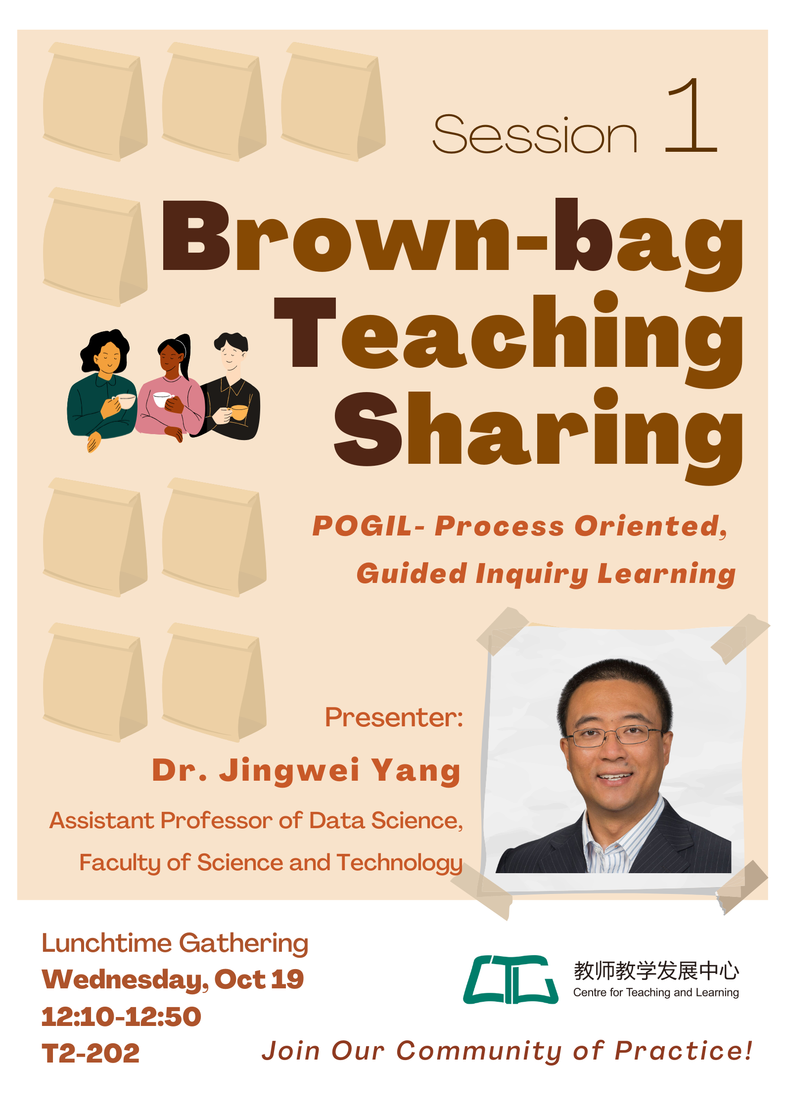 Note: Bring your own lunch to this informal teaching sharing series. Tasty snacks and beverage will be provided.