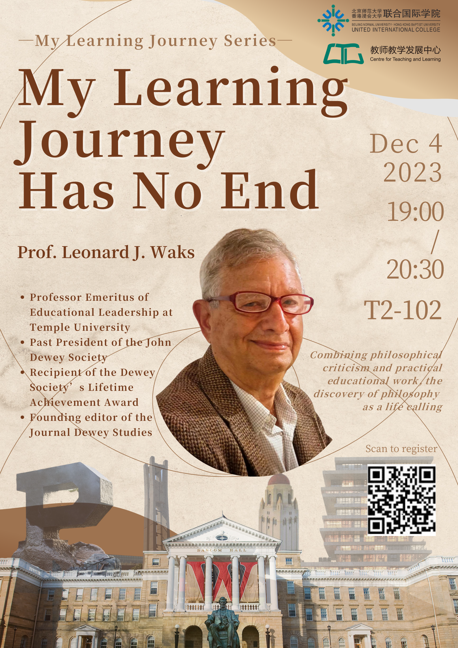 Professor Leonard J. Waks describes his journey from cheerless school years to his discovery of philosophy as his life calling. He initially saw philosophy as social criticism, but his teachers directed him along a narrow academic path. His dissatisfaction with academic philosophy led to a period of reflection. He engaged with stoicism and Chinese Buddhism but was not yet able to integrate these into his academic work. Prof.Waks left academic philosophy for a career in educational studies, combining philosophical criticism and practical educational work. This career shift led him to study the philosophy of John Dewey. Eventually, all of these strands came together. He has found ways to integrate all of them in both his philosophical and educational work. Since 2017, he has been invited to speak, teach and consult in China. Working with others, he contributes to global philosophy and intercultural humane education.