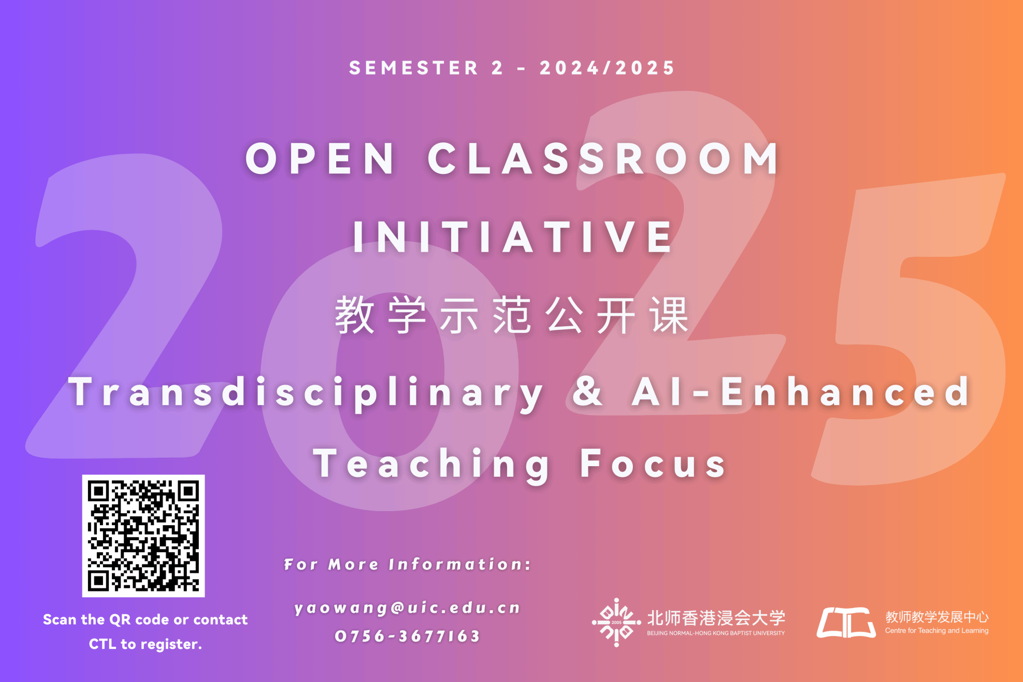 Are you exploring transdisciplinary approaches or integrating AI tools in your teaching? CTL invites you to showcase your innovative practices through our Open Classroom Initiative (OCI) during 7 Apr (Week 9) to 25 Apr (Week 11). This is a great opportunity to share your experiences, receive valuable peer feedback, and inspire colleagues with your teaching innovations.