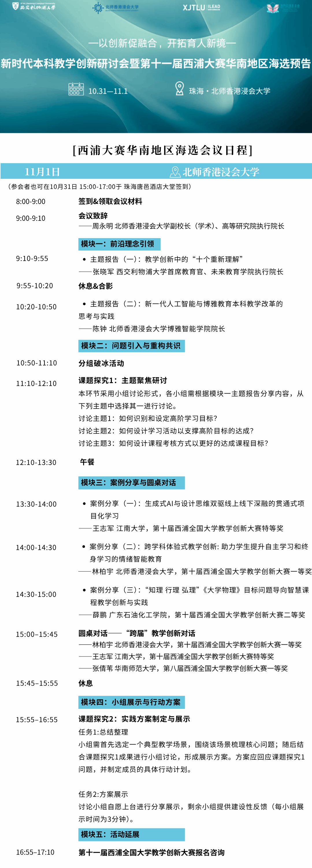 为深入探讨这一议题,西交利物浦大学与北师香港浸会大学联合主办 “新时代本科教学创新研讨会暨第十一届西浦全国大学教学创新大赛华南地区海选” ,将于2025年11月1日在北师香港浸会大学拉开帷幕。