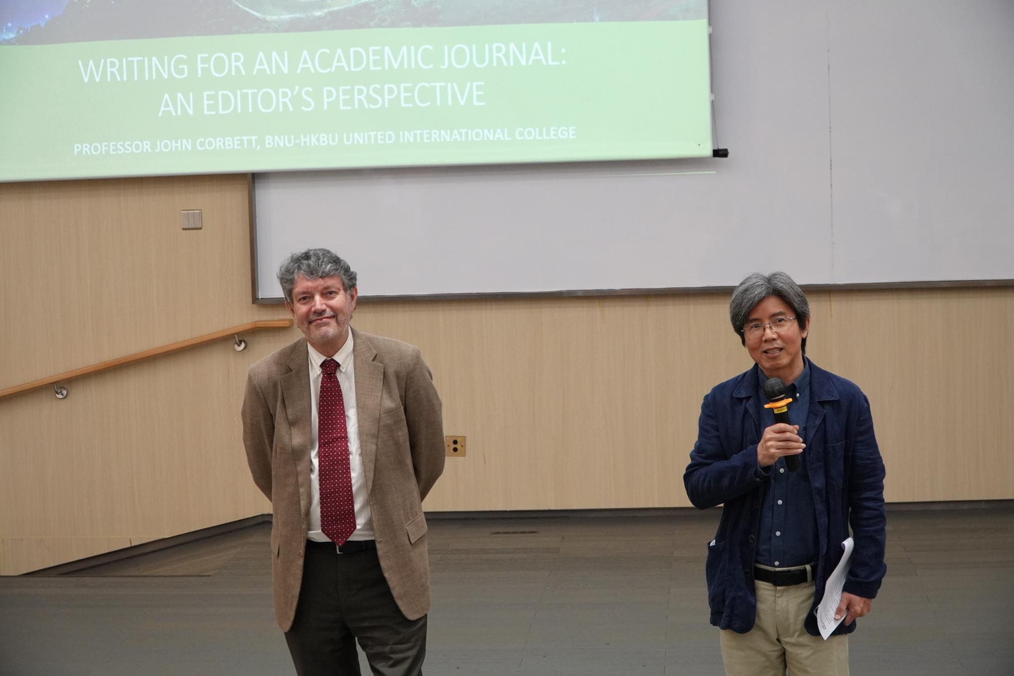 Vice-President (Academic) Prof. Huaxiong Huang (right) introducing the presenter Prof. John Corbett (left)