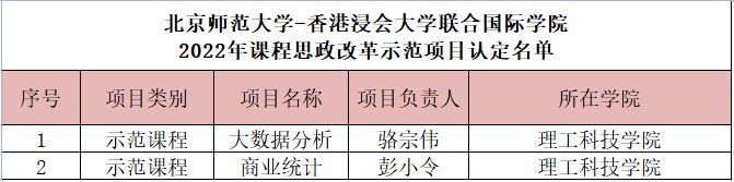 近日,广东省教育厅公布2022年度本科高校课程思政改革示范项目认定名单。北师港浸大(UIC)获认定课程思政改革示范项目2个,分别为理工科技学院计算机科学系副主任骆宗伟博士的《大数据分析》课程与彭小令博士的《商业统计》课程。