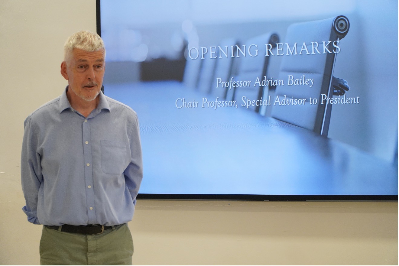 Prof. Adrian Bailey having a welcome speech