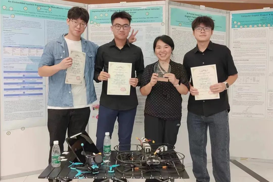 纪燕燕老师 (右二)与学生在2023年计算机类海报展