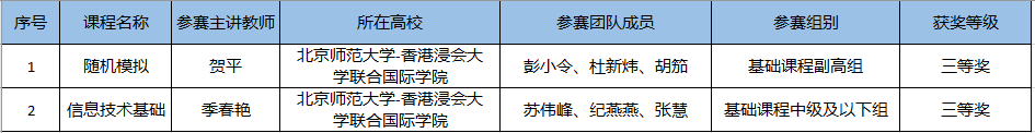 近日,第四届全国高校教师教学创新大赛广东分赛暨广东省高校教师教学创新大赛获奖名单揭晓,北师港浸大(UIC)理工科技学院贺平博士团队荣获基础课程赛道副高组三等奖,季春艳博士团队荣获基础课程赛道中级及以下组三等奖。