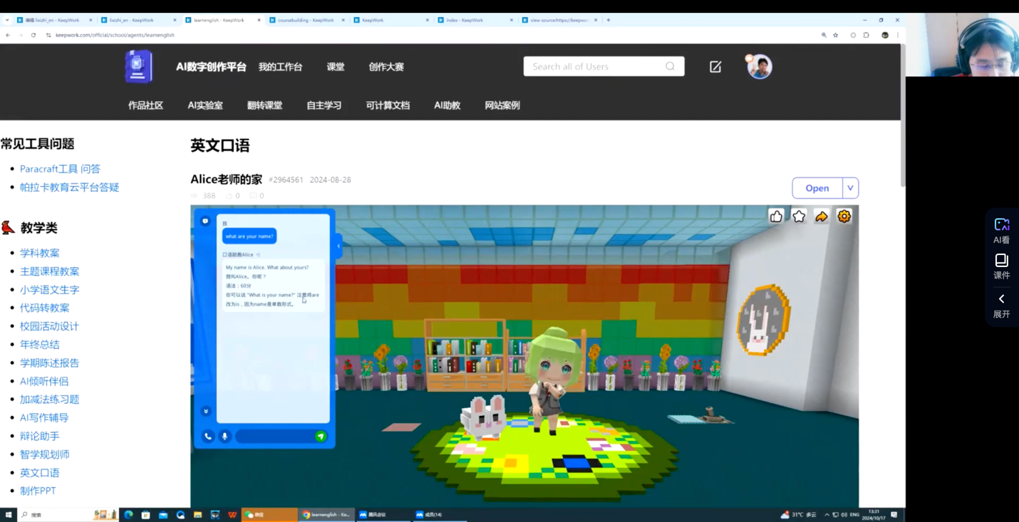 On October 17, 2024, the fourth session of the AI Empowers Education series, titled "Computable Doc Intro: A Hands-on Guide to Keepwork Platform", took place online via Tencent Meeting from 12:30-13:30 with the warming host of Dr. Vivien Wai Wan Chan from the Centre of Teaching and Learning (CTL). Imparted by Mr. Xizhi LI, the founder of Neural Parallel Language (NPL) and Paracraft, also the CEO of Shenzhen Tatfook Network Technology, this lecture featured hands-on instructions on the utilization of Keepwork in educational background, attracting over 20 online participants.