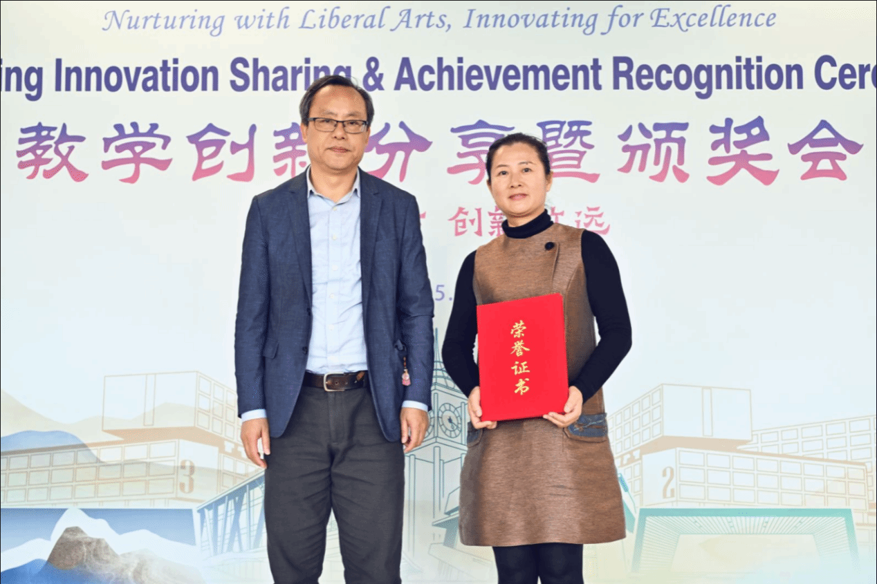 Prof. Yaqing Mao presents third-prize awards for The Fifth National Blended Teaching & Learning Innovation Contest