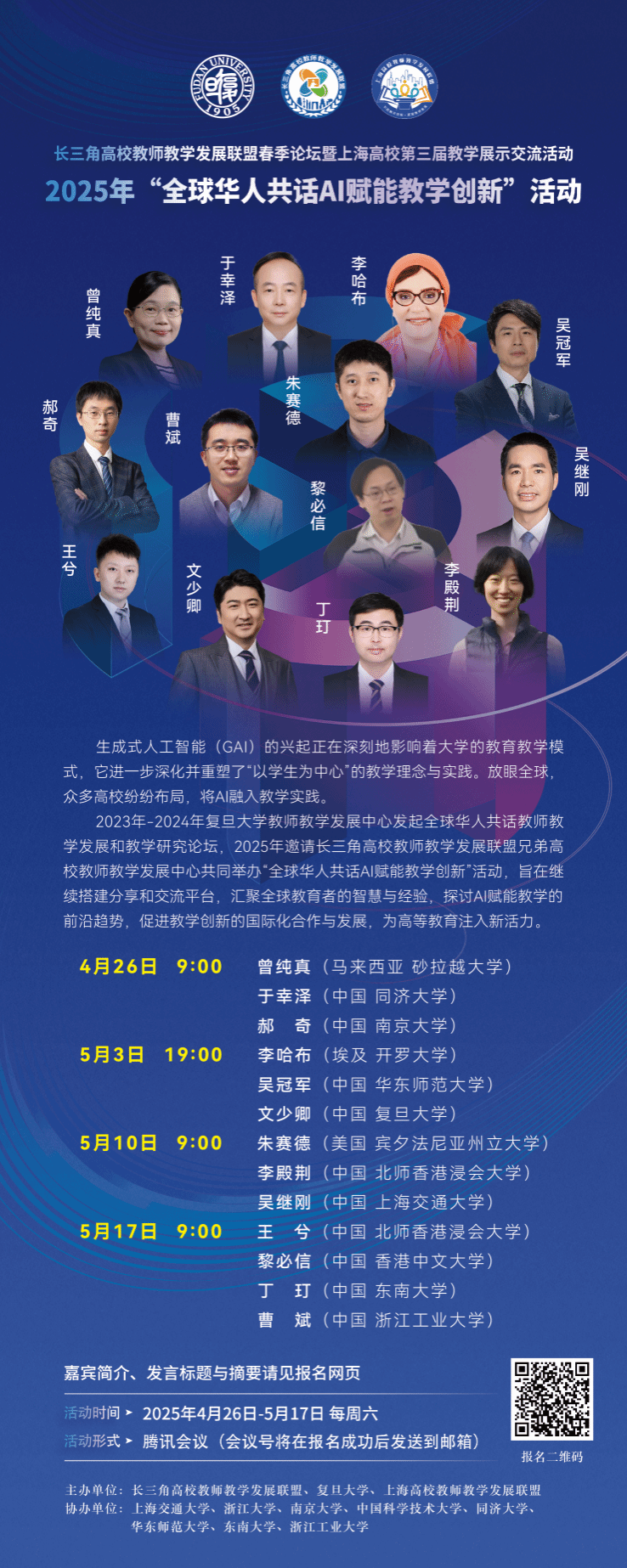 本论坛由长三角高校教师教学发展联盟成员高校的教师教学发展中心联合主办,旨在回应AI时代催生的“以学生为中心”的教学理念与实践挑战,搭建国际交流与合作平台,汇聚全球教育者的智慧与经验,探讨AI赋能教学的前沿趋势,推动教学创新的国际化合作与发展,为高等教育注入新的活力。
