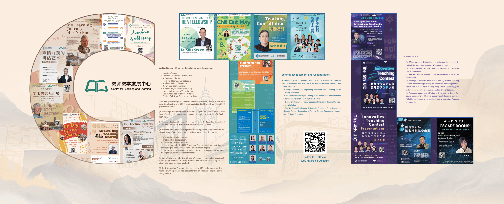 Established in January 2021 with the mission of promoting excellence in teaching and learning, BNBU’s CTL gain the endorsement in the same year for its Higher Education Teaching Quality and Reform Project of Guangdong Province for undergraduate universities. Since its inception, the centre has organized over 160 professional development activities covering themes such as AI-empowered education, transdisciplinary education, and teaching skills enhancement, reaching more than 15,000 participants online and offline. Through activities such as Induction Program, Open Classroom Initiative, Staff Mentoring Program, and Teaching Consultation Program, CTL provides a systematic growth path for teachers—from conceptual understanding to practical application—fostering transdisciplinary integration and innovation in educational models. Additionally, leveraging the advantages of the collaborative partnership between Mainland China and Hong Kong universities, the centre has built cross-university and cross-cultural exchange platforms, facilitating the two-way flow of high-quality teaching resources and successful experiences. This not only enhances teachers’ international pedagogical perspectives but also creates a rich and diverse learning environment for students.