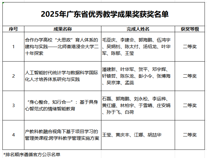 北师香港浸会大学2025年广东省优秀教学成果奖获奖名单