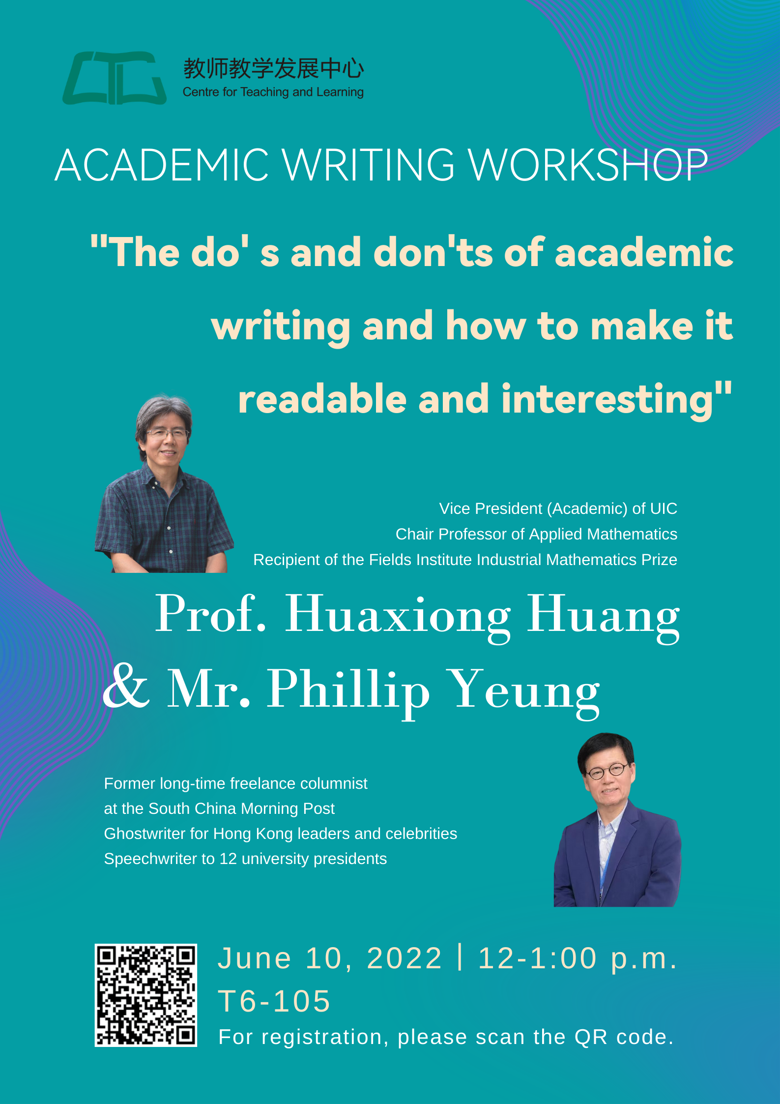 Speakers: Prof. Huaxiong Huang, Vice President (Academic) & Mr. Phillip Yeung, Professional Writer