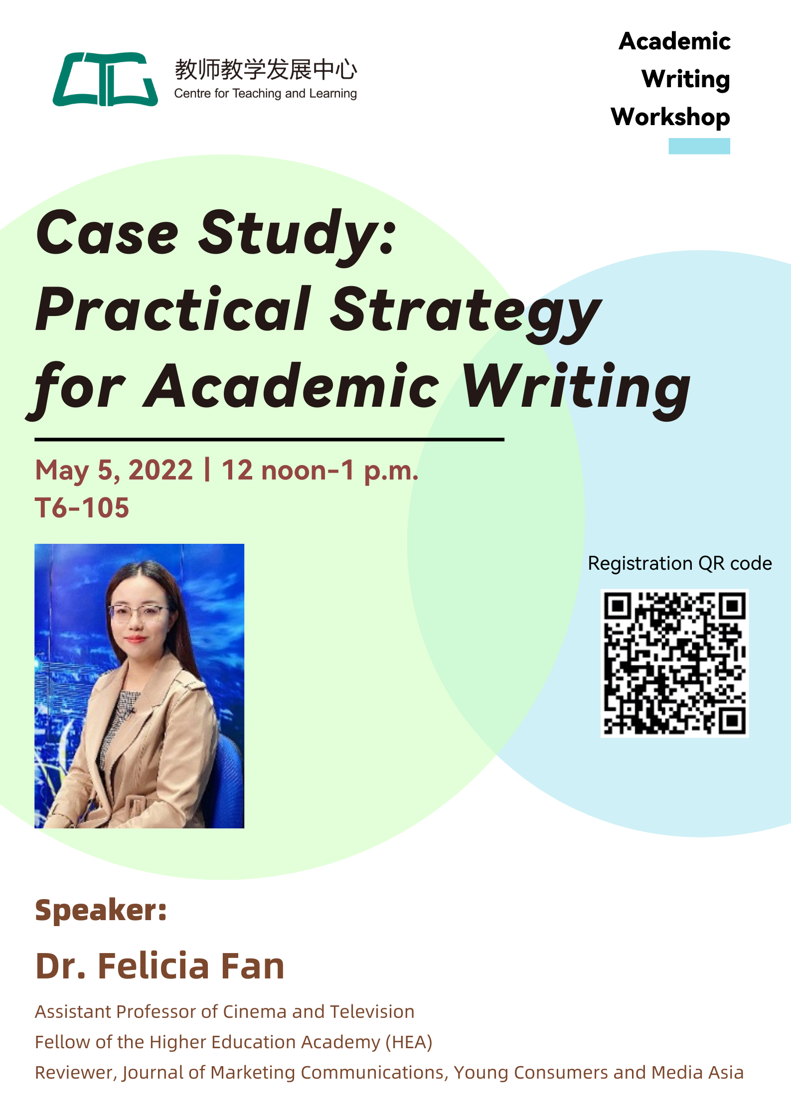 Abstract: This workshop aims to share some hands-on experience about how to draft journal articles in a reader-friendly way. Questions about how to start your academic writing, how to draft journal articles in a structured way, and how to find a good editor to proofread your research papers will be addressed in this case study workshop. Meanwhile, some useful applications will be recommended to facilitate your academic writing.