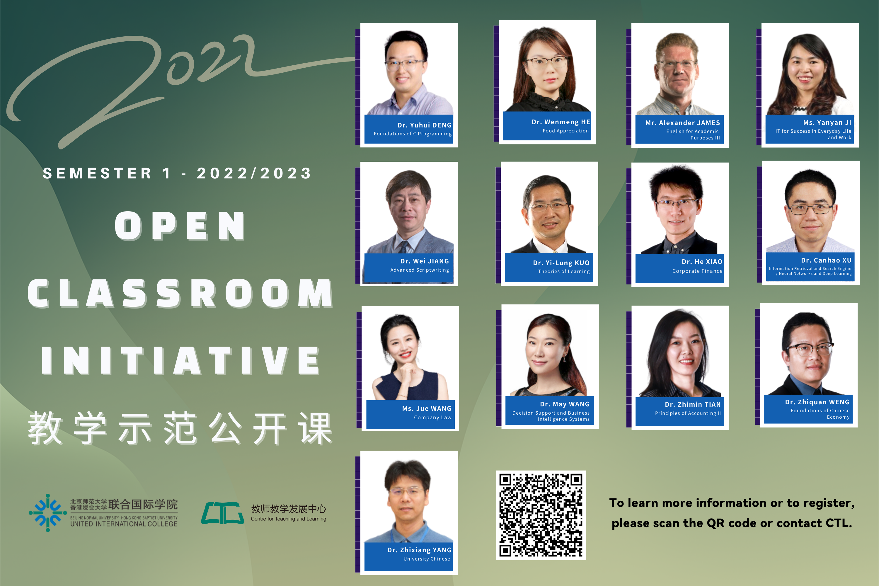 | To promote teaching excellence at UIC, “Open Classroom Initiative” (OCI) is launched to provide colleagues a safe space to learn and develop innovative and technological pedagogical practices from the exemplary colleagues who have demonstrated teaching excellence in their courses. If you would like to observe the participating courses, please register and choose the available timeslot in advance. After receiving the registration, CTL will inform the course instructors and participants via email.