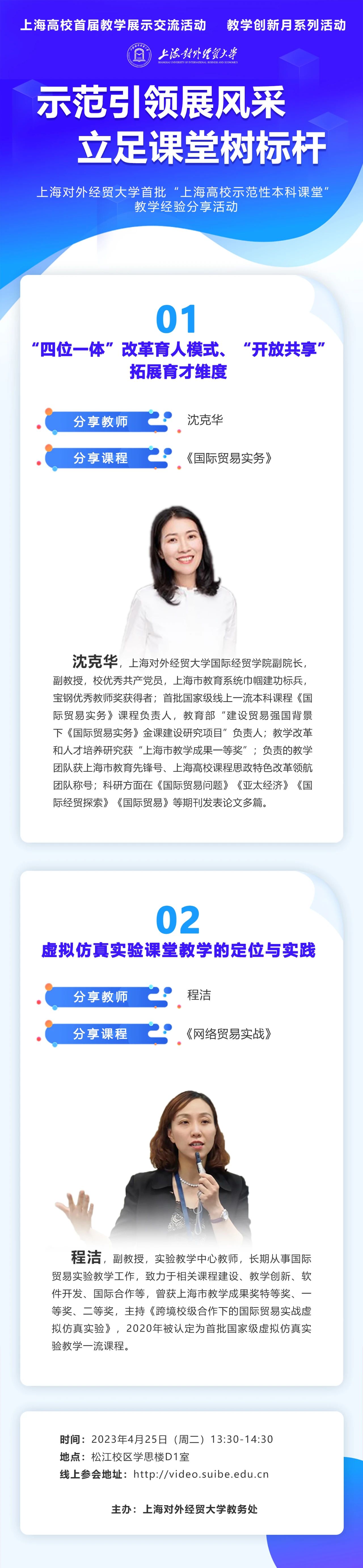 Organizer: Office of Academic Affairs, Shanghai University of International Business and Economics Date &Time: 13:30 pm–14:30 pm, April 25, 2023