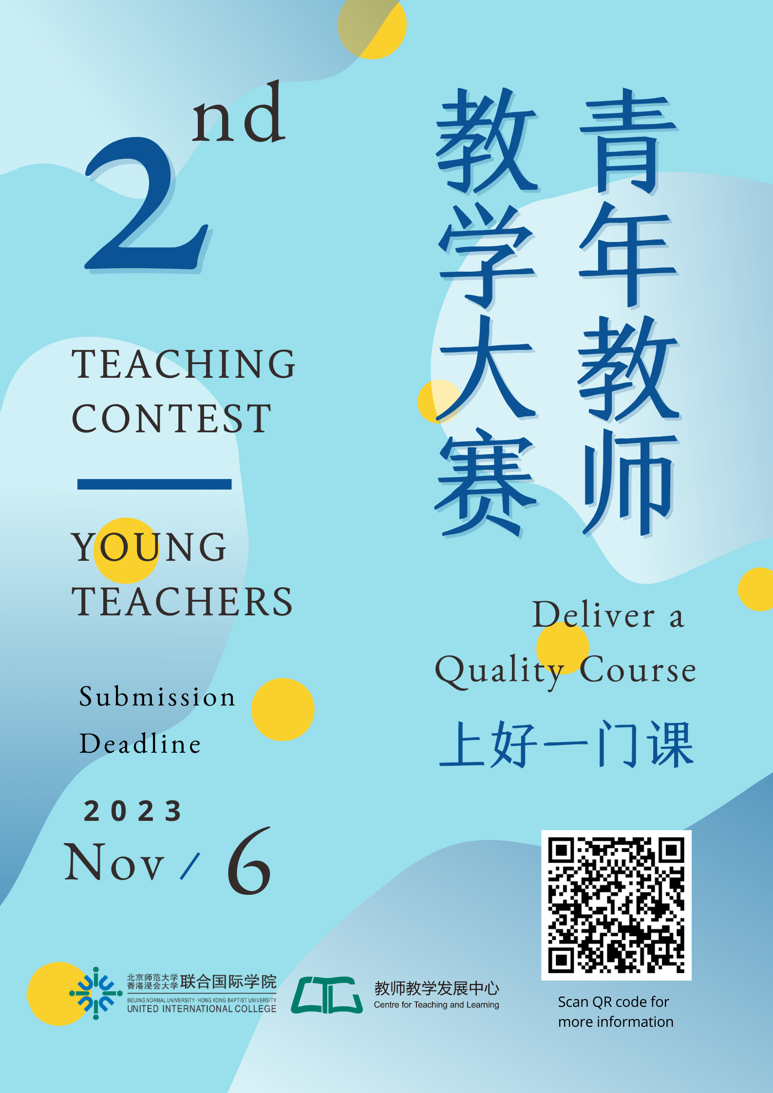 To promote teaching excellence at UIC and nominate outstanding young teachers for the 7th Guangdong Teaching Contest for Young Teachers in 2024, we are pleased to launch the 2023 UIC Teaching Contest for Young Teachers. The theme of this contest is “Deliver a Quality Course.” Detailed requirements, guidelines, and scoring criteria are listed in the attachment. The rubrics are the same as the ones used for the provincial contest.